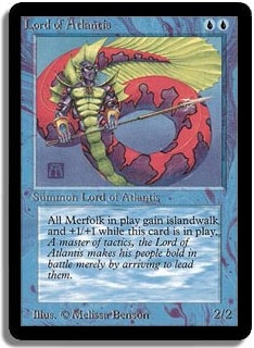 All Merfolk in play gain islandwalk and +1/+1 while this card is in play.
