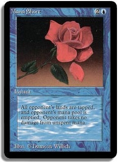 All opponent's lands are tapped, and opponent's mana pool is emptied. Opponent takes no damage from unspent mana.