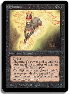 Flying. Nightmare's power and toughness both equal the number of swamps its controller has in play.