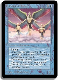 Flying. Controller must spend <U> during upkeep to maintain or Phantasmal Forces are destroyed.