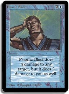 Psionic Blast does 4 damage to any target, but it does 2 damage to you as well.