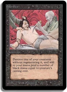 Sacrifice one of your creatures to add to your mana pool a number of black mana equal to that creature's casting cost.