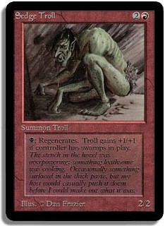 <B>: Regenerates. While controller has swamps in play, Sedge Troll gains +1/+1.