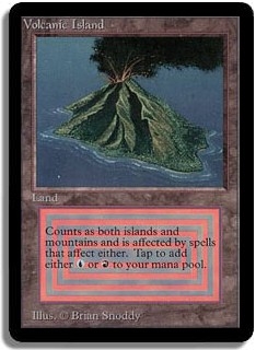 Counts as both island and mountain and is affected by spells that affect either. Tap to add either <U> or <R> to your mana pool.