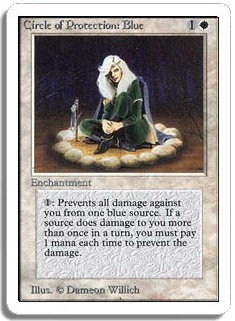 <1>: Prevents all damage against you from one blue source. If a source does damage to you more than once in a turn, you must pay 1 mana each time you want to prevent the damage.