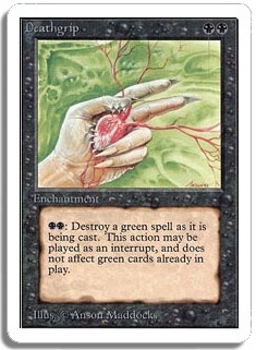 <BB>: Destroy a green spell as it is being cast. This action may be played as an interrupt, and does not affect green cards already in play.