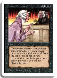 If opponent doesn't concede the game immediately, each player must ante an additional card from the top of his or her library. Remove this card from your deck before playing if you are not playing for ante.