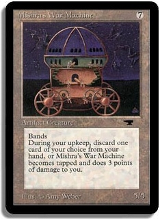 Banding. During your upkeep, choose and discard one card from your hand, or Mishra's War Machine deals 3 damage to you. If Mishra's War Machine deals damage to you in this way, tap it.