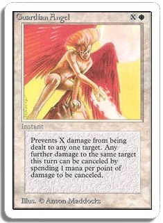 Prevents X damage from being dealt to any one target. Any further damage to the same target this turn can be canceled by spending 1 mana per point of damage to be canceled.