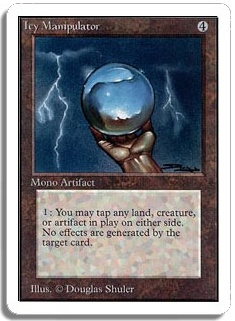<1>: You may tap any land, creature, or artifact in play on either side. No effects are generated by the target card.