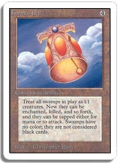 Treat all swamps in play as 1/1 creatures. Now they can be enchanted, killed, and so forth, and they can be tapped either for mana or to attack. Swamps have no color; they are not considered black cards.