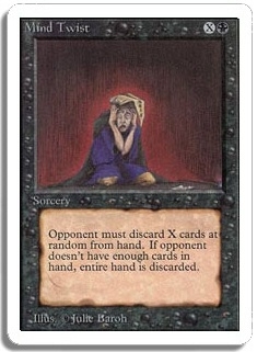 Opponent must discard X cards at random from hand. If opponent doesn't have enough cards in hand, entire hand is discarded.