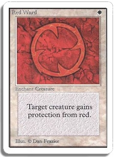Target creature gains protection from red.