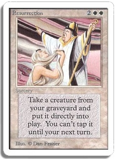 Take a creature from your graveyard and put it directly into play. Treat this creature as though it were just summoned.