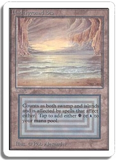 Counts as both swamp and island and is affected by spells that affect either. Tap to add either <B> or <U> to your mana pool.