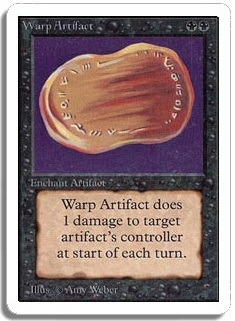 Warp Artifact does 1 damage to target artifact's controller at start of each turn.