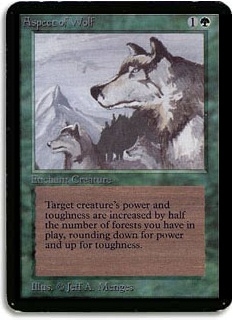 Target creature's power and toughness are increased by half the number of forests you have in play, rounding down for power and up for toughness.
