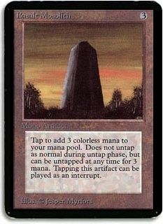 Add 3 colorless mana to your mana pool. Does not untap as normal during untap phase; spend <3> to untap. Tapping this artifact can be played as an interrupt.