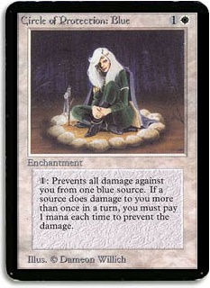 <1>: Prevents all damage against you from one blue source. If a source does damage to you more than once in a turn, you must pay 1 mana each time you want to prevent the damage.