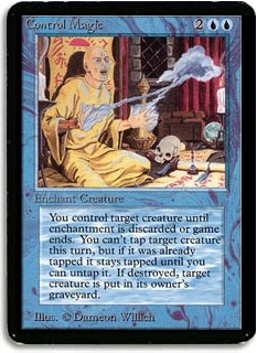 You control target creature until enchantment is discarded or game ends. You can't tap target creature this turn, but if it was already tapped it stays tapped until you can untap it. If destroyed, target creature is put in its owner's graveyard.