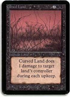 Cursed Land does 1 damage to target land's controller during each upkeep.