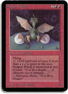 Flying. <R>: +1/+0 until end of turn. If more than <RRR> is spent in this way, Dragon Whelp is destroyed at end of turn.