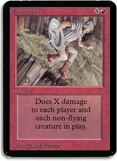 Does X damage to each player and each non-flying creature in play.