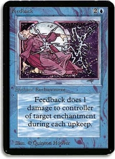 Feedback does 1 damage to controller of target enchantment during each upkeep.