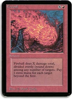 Fireball does X damage total, divided evenly (round down) among any number of targets. Pay 1 extra mana for each target beyond the first.