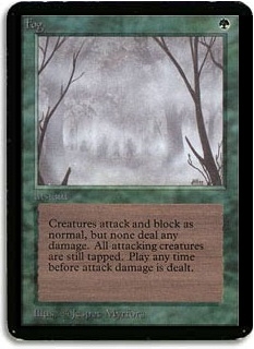 Creatures attack and block as normal, but none deal any damage. All attacking creatures are still tapped. Play any time before attack damage is dealt.