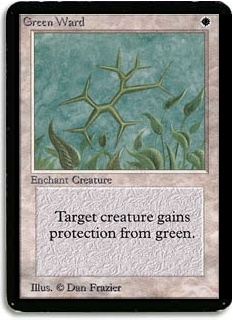 Target creature gains protection from green.