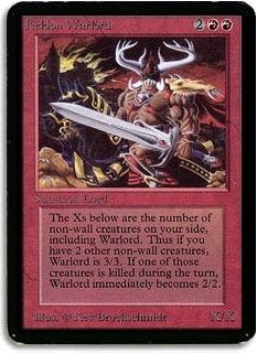 The Xs below are the number of non-wall creatures on your side, including Warlord. Thus if you have 2 other non-wall creatures, Warlord is 3/3. If one of those creatures is killed during the turn, Warlord immediately becomes 2/2.