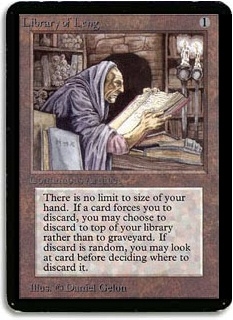 There is no limit to size of your hand. You must skip the discard phase of your turn. If a card forces you to discard, you may choose to discard to top of your library rather than to graveyard. If discard is random, you may look at card before deciding where to discard it.