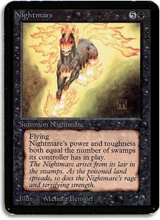 Flying. Nightmare's power and toughness both equal the number of swamps its controller has in play.