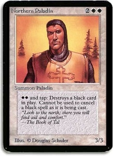 <WW> and tap: Destroys a black card in play. Cannot be used to cancel a black spell as it is being cast.