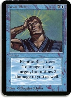 Psionic Blast does 4 damage to any target, but it does 2 damage to you as well.