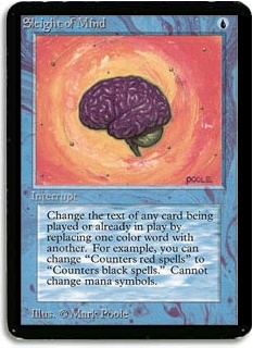 Change the text of any card being played or already in play by replacing one color word with another. For example, you can change "Counters red spells" to "Counters black spells". Cannot change mana symbols.