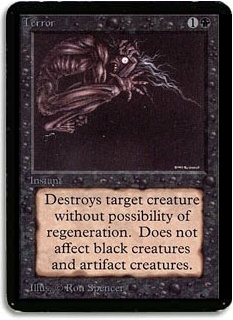 Destroy's target creature without possibility of regeneration. Does not affect black creatures and artifact creatures.