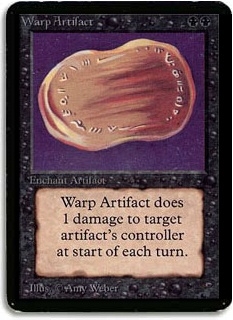 Warp Artifact does 1 damage to target artifact's controller at start of each turn.