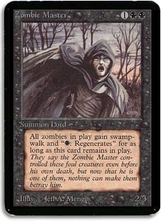 All zombies in play gain swampwalk and"<B>: Regenerates" for as long as this card remains in play.