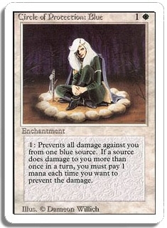 <1>: Prevents all damage against you from one blue source. If a source does damage to you more than once in a turn, you must pay 1 mana each time you want to prevent the damage.