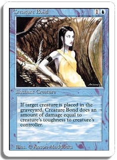 If target creature is placed in the graveyard, Creature Bond does an amount of damage equal to creature's toughness to creature's controller.