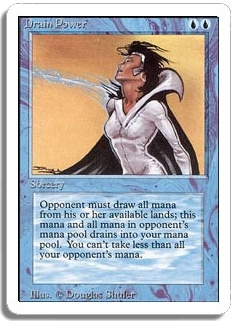 Opponent must draw all mana from his or her available lands; this mana and all mana in opponent's mana pool drains into your mana pool. You can't take less than all your opponent's mana.
