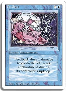 Feedback does 1 damage to controller of target enchantment during its controller's upkeep.
