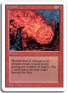 Fireball does X damage total, divided evenly (round down) among any number of targets. Pay 1 extra mana for each target beyond the first.