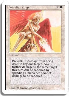 Prevents X damage from being dealt to any one target. Any further damage to the same target this turn can be canceled by spending 1 mana per point of damage to be canceled.