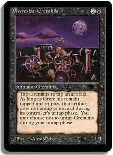 Tap Gremlins to tap an artifact. As long as Gremlins remain tapped and in play, that artifact does not untap as normal during its controller's untap phase. You may choose not to untap Gremlins during your untap phase.
