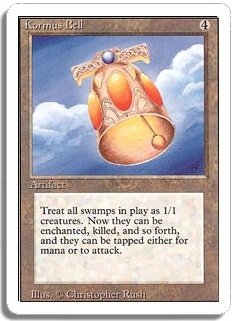 Treat all swamps in play as 1/1 creatures. Now they can be enchanted, killed, and so forth, and they can be tapped either for mana or to attack.
