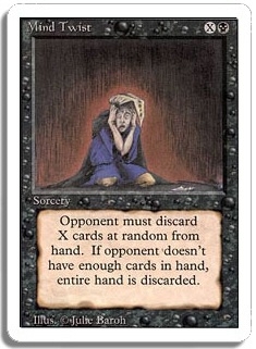 Opponent must discard X cards at random from hand. If opponent doesn't have enough cards in hand, entire hand is discarded.