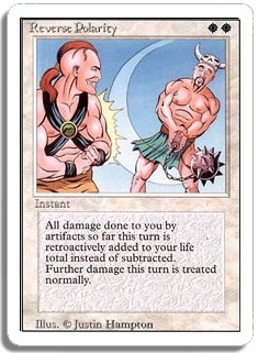 All damage done to you by artifacts so far this turn is retroactively added to your life total instead of subtracted. Further damage this turn is treated normally.